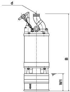| Model | Colour code curve | Bore mm | Motor output kW | Rated current A | Head max. m | Capacity max. l/min | Dry weight kg w/o cable | Max. solid handling ø mm | Pressure resistance max. m | Cable length m |